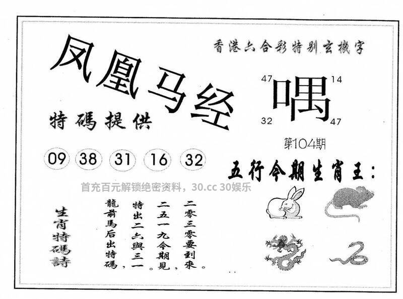 104期:一字解特码玄机字【喁】 解析:其本意为区域或兽名,一种猴或古同“偶”,偶像 综合生肖:兔鼠龙蛇猪狗 |
